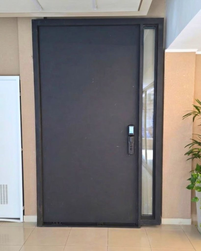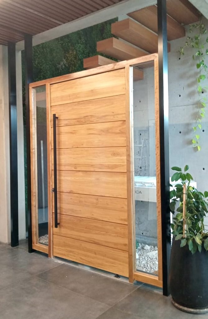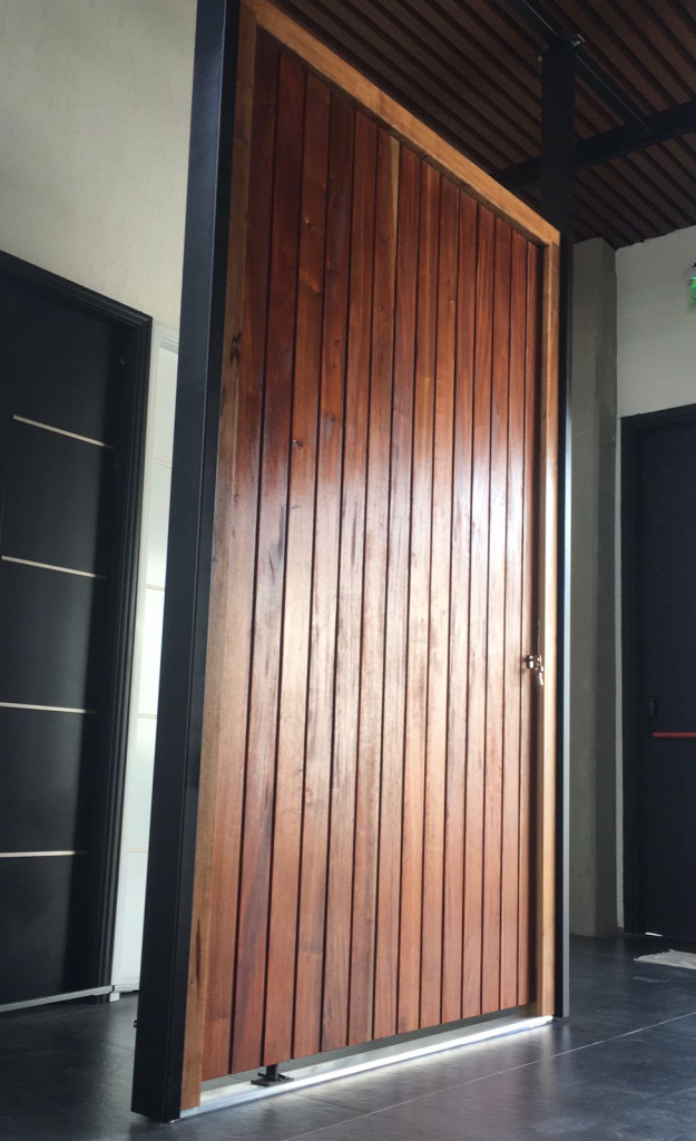 puerta en cedro 110x224 pivotante con cerradura electrónica